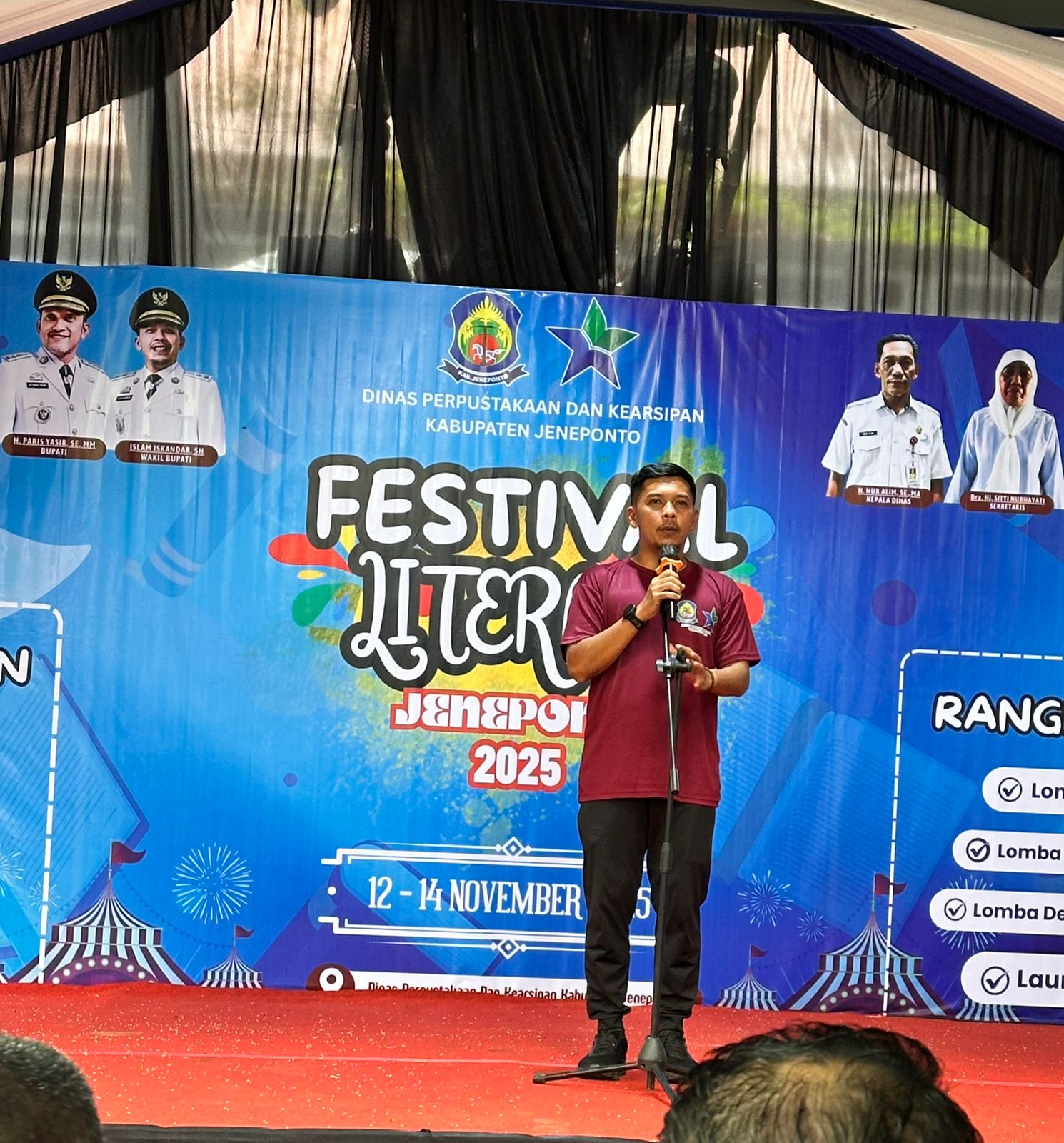 Wakil Bupati Jeneponto Islam Iskandar membuka Festival Literasi Kabupaten Jeneponto di Taman HV Worang, Jeneponto, Rabu (12/11/2025). Foto: Istimewa/IndoPos86.com.